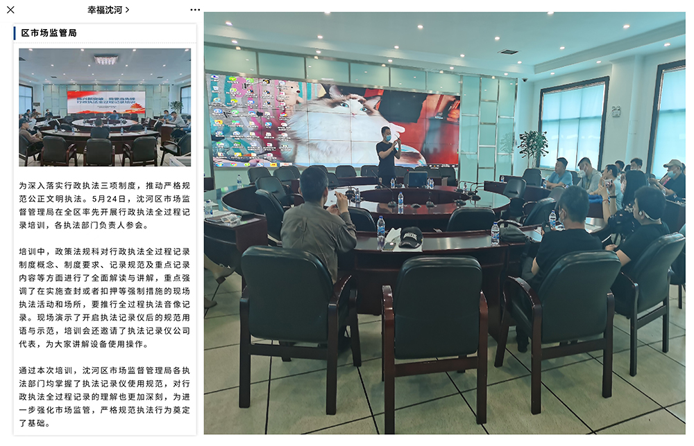 沈陽安豐電子工程有限公司參與沈陽市沈河區市場監督管理局“振興新突破、我要當先鋒”行政執法全過程記錄培訓。為參會人員深度講解執法記錄儀使用方法、規范。誠信服務社會、承擔企業責任!!!